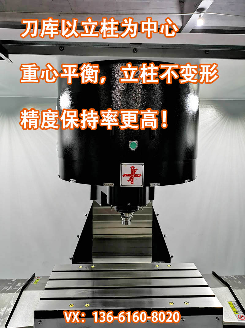 配備8工位多連桿式專利刀庫,刀庫以立柱為中心,重心平衡,精度保持率更高更久。