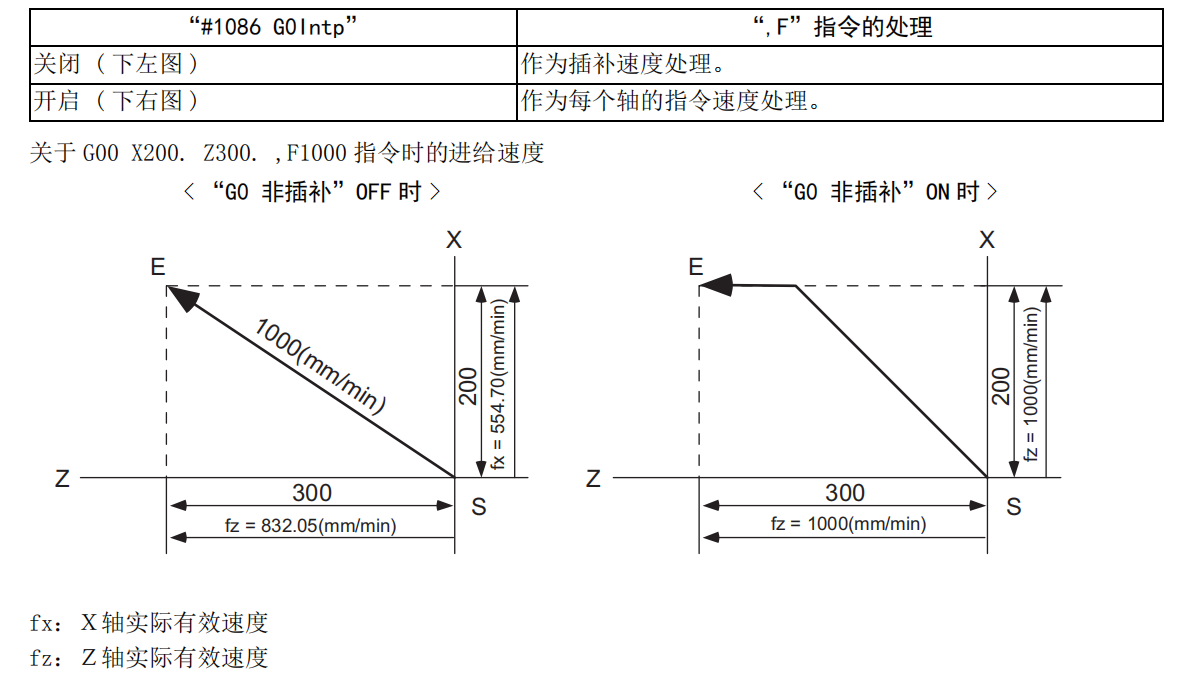 (4) “,F”指令的動(dòng)作因參數(shù) “#1086 G0Intp”的狀態(tài)而異。