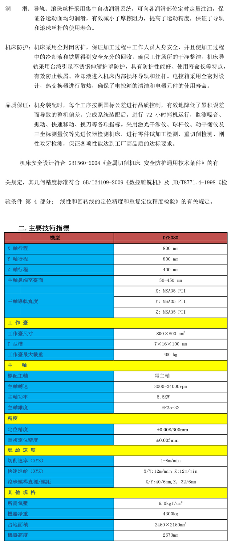 Y軸行程: 800 mm; Z軸行程: 380 mm; 主軸鼻端至臺(tái)面: 50-430 mm; 工作臺(tái)尺寸: 800×800 mm; 標(biāo)配主軸: 電主軸; 主軸轉(zhuǎn)速:3000-24000rpm;" />