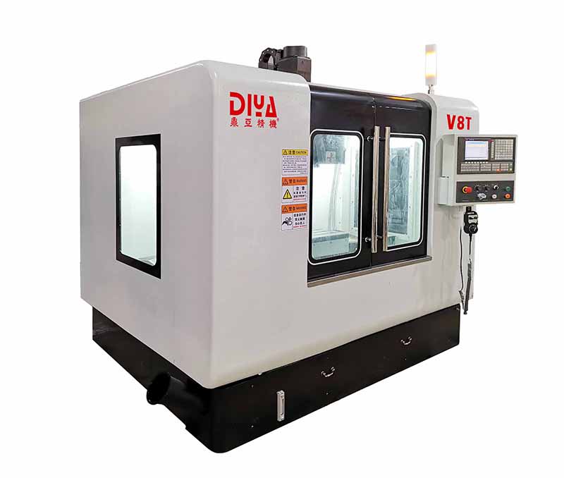 V8T立式加工中心采用專用刀庫(發(fā)明專利)是以立柱為中心,重心平衡,換刀快速靈活,每把刀擁有固定的刀號,從不亂刀。